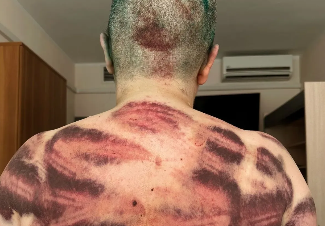 "Новая" также опубликовала две фотографии Милашиной со следами избиения. Гематомы видны на голове, в частности, на затылочной части головы, вся спина журналистки в синяках.