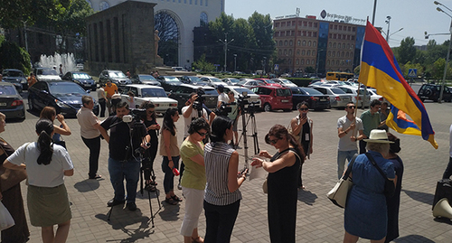 Около 30 карабахских беженцев на акции протеста в Ереване потребовали направить в Нагорный Карабах международных миротворцев.