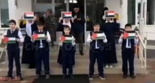 Дети разных возрастов в школах Чечни привлечены к молитвам за Палестину, следует из видео, опубликованных сегодня в соцсети.