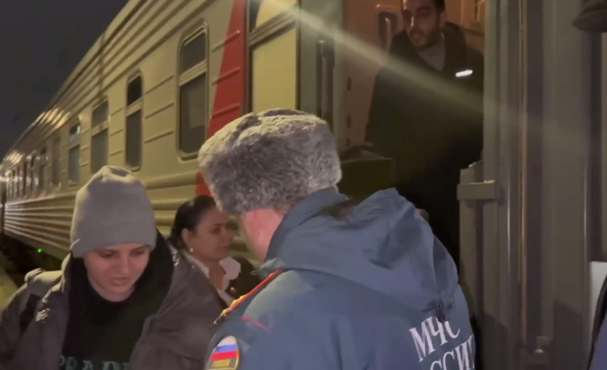 На видео, которое приложено к публикации, беженцам, в том числе женщинам, помогают выйти из поезда, спустить по ступенькам чемоданы и тюки с поклажей. У поезда беженцев встречает председатель правительства Дагестана Абдулмуслим Абдулмуслимов. Также показаны кадры, как беженцы садятся в автобус.
