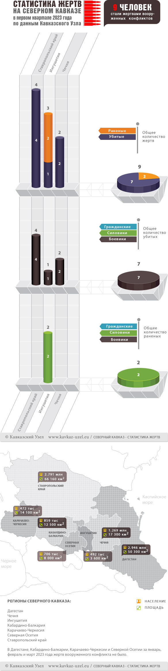 Инфографика. Статистика жертв на Северном Кавказе в первом квартале 2023 года по данным Кавказского Узла