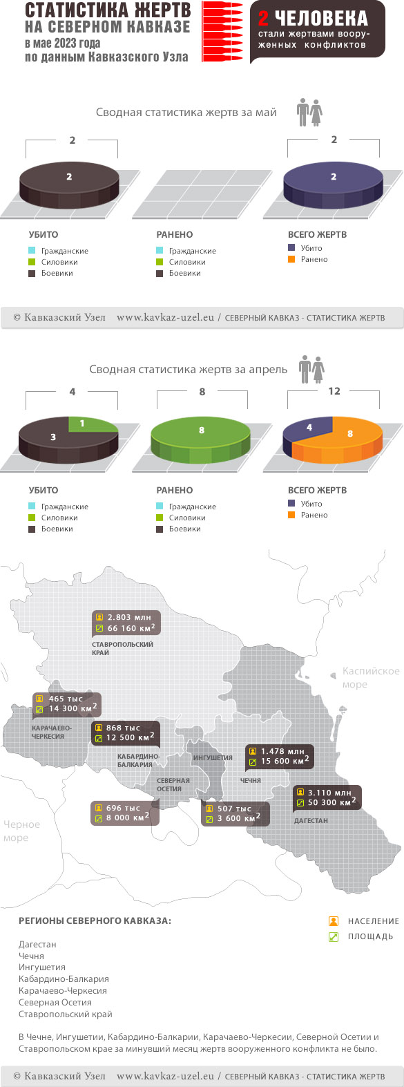 Инфографика. Статистика жертв на Северном Кавказе в мае 2023 года по данным Кавказского Узла