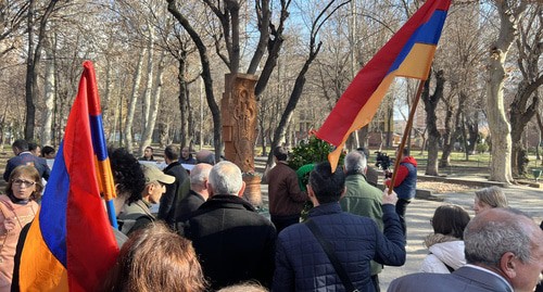 Днем сторонники оппозиционного движения прошли шествием в Английский сквер, где установлен мемориал памяти повстанцев. Они также почтили память Алексея Навального, возложив цветы к памятнику армянского поэта Егише Чаренца – жертве сталинских репрессий, передает корреспондент "Кавказского узла".