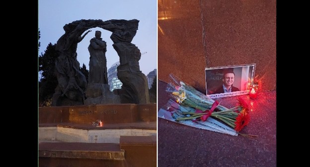 Фото импровизированного мемориала памяти Навального опубликовано в сообществе "В Азербайджане β" в социальной сети "ВКонтакте".