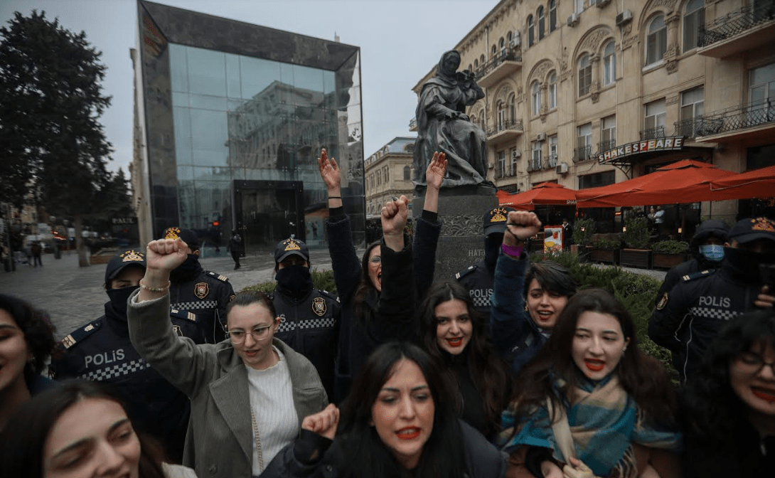 Впервые феминистки в Баку пытались провести акцию: "Выступи против насилия" 8 марта 2019 года. Силовики разогнали их, чем подтвердили наличие "мощных гендерных стереотипов" в азербайджанском обществе, констатировала журналистка Хадиджа Исмайлова. 8 марта 2020 года участники организованного феминистками шествия в Баку указали властям на проблему семейного насилия; полицейские задержали нескольких участников акции. В 2021 году полиция разогнала марш феминисток в Баку, вышедших протестовать против гендерного неравноправия и преступлений против женщин на бытовой почве. Активистки заранее уведомили власти об акции, но получили отказ в согласовании, сообщила одна из организаторов Гюльнара Мехтиева. В 2022 году полиция не стала разгонять участников акции. Однако силовики взяли группу активисток в оцепление и сопровождали на протяжении всей акции, не позволяя присоединиться к ней новым участникам.