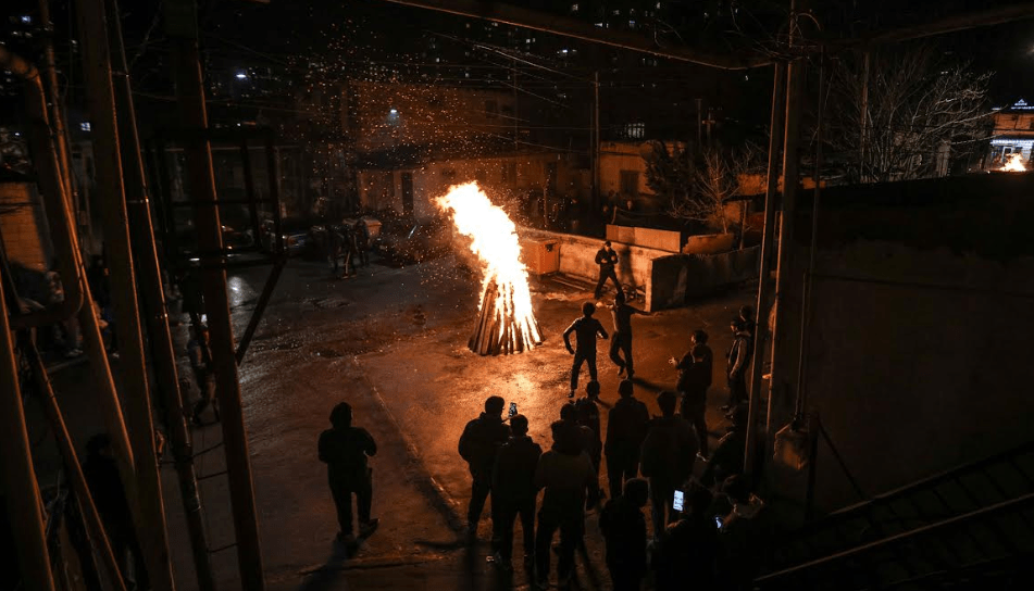 Ночью обязательно во дворах, кварталах зажигают костры, прыгая через которые, люди сбрасывают в огонь печали ушедшего года.