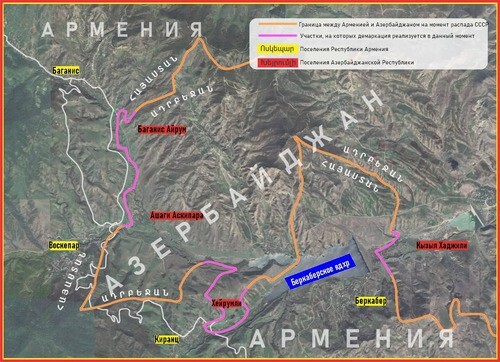 На начальном этапе процесса делимитации стороны предварительно согласовали прохождение отдельных отрезков линии границы непосредственно между населенными пунктами Баганис (Республика Армения) – Баганыс Айрым (Азербайджанская Республика), Воскепар (РА) – Ашагы Аскипара (АР), Киранц (РА) – Хейримлы (АР) и Беркабер (РА) – Гызылгаджилы (АР), - сообщала азербайджанская госкомисия 3.