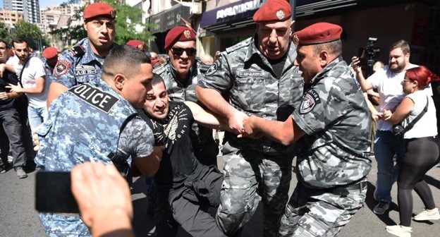 Член НДП Геворг Сафарян также сообщил, что полицейские применили грубую силу при задержании оппозиционеров. "Наносили удары, таскали по асфальту, клали на асфальт, у многих одежда порвана", - сказал он корреспонденту "Кавказского узла".