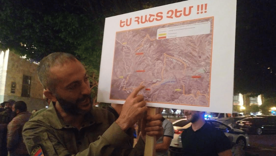 "Я вышел на улицу выразить свое несогласие, призываю вас тоже не мириться с этим решением, потому что в противном случае это будет стоить наших жизней", - сказал Геворкян. Он добавил, что в случае сдачи земель позиции армянских войск ухудшатся.