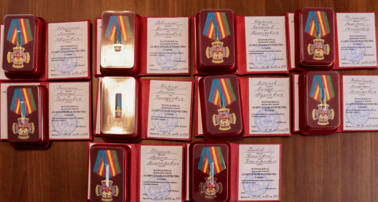 Ранее районные власти опубликовали список убитых в военной операции на Украине казаков, награжденных орденскими знаками "За Веру, Кубань и Отечество" I степени. В орденских удостоверениях, фотография которых приложена к публикации от 27 декабря 2023 года, названы Алексей Овчаренко, Виталий Левченко, Вячеслав Шунин, Василий Фоменко, Николай Коробкин, Артем Обедкин. В октябре 2023 года районные власти сообщили о передаче ордена Мужества родным убитого в военной операции Виталия Солдатова.