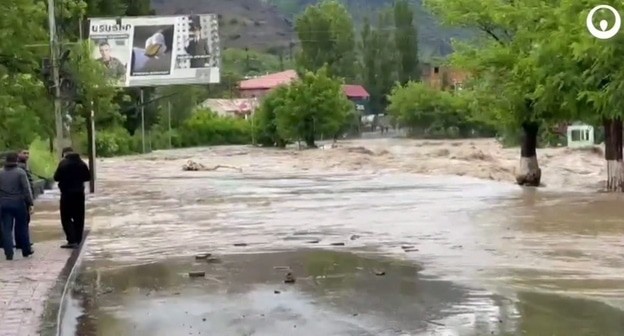 В Тавушской области как минимум один человек погиб в результате наводнения из-за выхода из берегов реки Дебед после обильных осадков. Жители Лорийской области рассказали в соцсети, что вышедшая из берегов река Ташир подтопила жилые дома в одноименном городе.