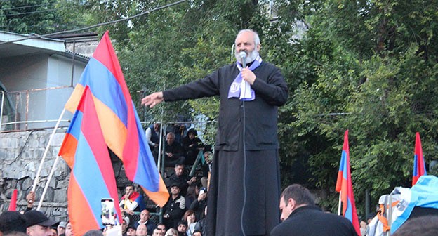 На митинге архиепископ Баграт Галстян заявил, что действующие власти "провалили все сферы", поэтому нынешнее правительство должно уйти в отставку.