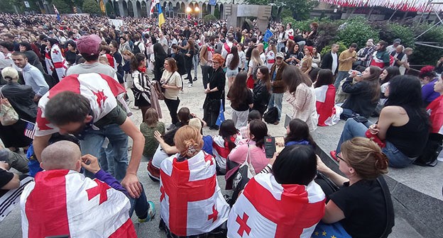 Как писал "Кавказский узел", протестующие против законопроекта об иноагентах вышли сегодня на акцию около здания парламента в Тбилиси. Сегодня депутаты обсуждают вопрос о преодолении президентского вето, которое 18 мая Саломе Зурабишвили наложила на закон об иноагентах ("О прозрачности иностранного влияния"), назвав его препятствием для евроинтеграции страны. Парламент назначил на 28 мая голосование за преодоление вето президента. 27 мая юридический комитет парламента разрешил депутатам преодолеть президентское вето на законопроект.