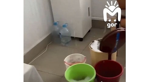 26 июня в паблике "Голос Дагестана" в соцсети "ВКонтакте" были опубликованы два видео, на которых показаны кабинеты в поликлинике, в которых с потолка течет вода. На полу видны подставленные под струи ведра, однако струи чрезмерно сильные, ведра наполнились, и вода течет на пол. Пол весь залит водой.