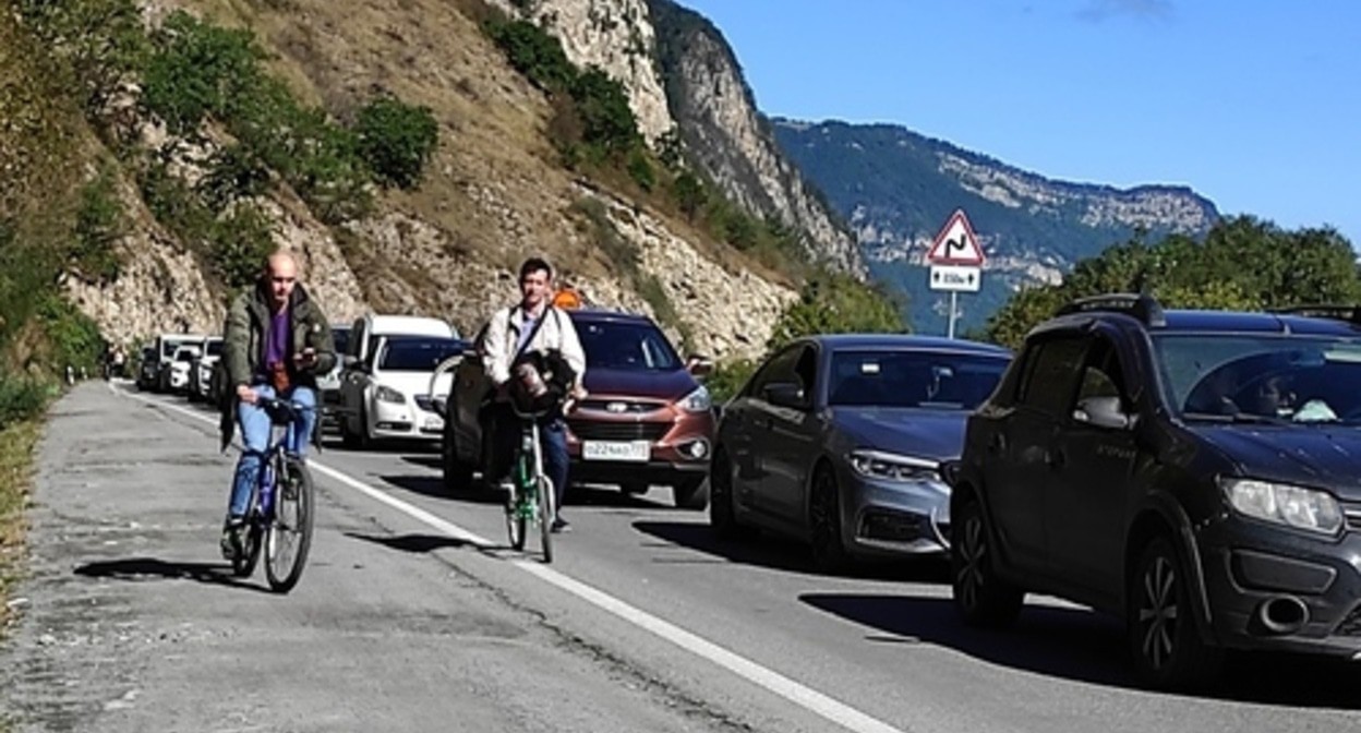 Разрешения на выезд в Грузию на пункте пропуска "Верхний Ларс" в Северной Осетии ожидают водители и пассажиры 3699 автомобилей. В соцсети некоторые из них рассказали, что в пробке приходится стоять как минимум три с половиной часа.