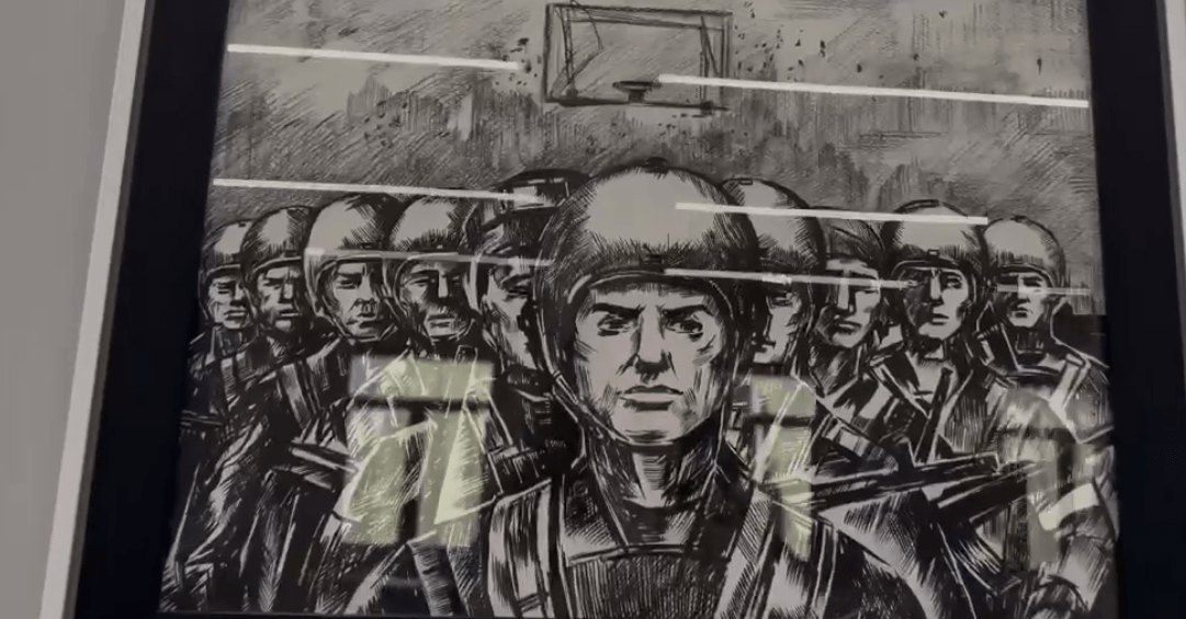 Здания построили даже не рядом со школой, а вместо части школы, несущей следы выстрелов танков. Уже у посещающих школу не возникнет вопрос как раньше: кто разрушил здания?