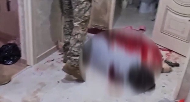 ФСБ также опубликовала видео, на кадрах которого силовики взламывают дверь в квартиру и пытаются проникнуть внутрь, после чего начинается стрельба. Затем показана комната, где на полу лежит человек, вокруг него видна кровь, затем показано несколько пистолетов. Также в ролике показаны гранаты, патроны, гранатомет и пять автоматов Калашникова.
