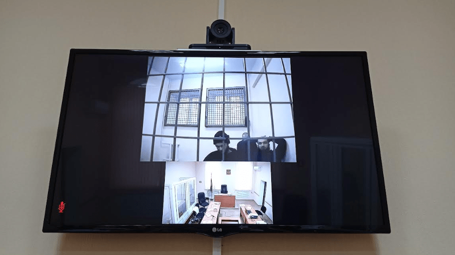 Монитор, по которому транслировалась видеоконференцсвязь, был включён на высокой громкости - каждое движение подсудимых, каждое шевеление, вздох были слышны очень громко. При этом они ходили по комнате, в которой находились, и из монитора постоянно исходил громкий гул, шорохи, скрежет, в то время как прокурор читал показания негромко, и часть показаний в зале суда даже в трех метрах от гособвинителя была слышна плохо.