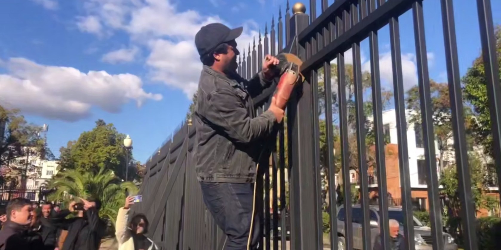 Протестующие начали демонтаж ограды, "установленной Асланом Бжанией вокруг комплекса правительственных зданий", сообщает "Нужная газета".