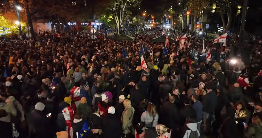 Сторонники оппозиции вновь заняли территорию у Тбилисского госуниверситета и установили палатки, протестуя против итогов парламентских выборов. Несмотря на силовой разгон акции и демонтаж палаток сегодня утром, они намерены остаться на ночь.