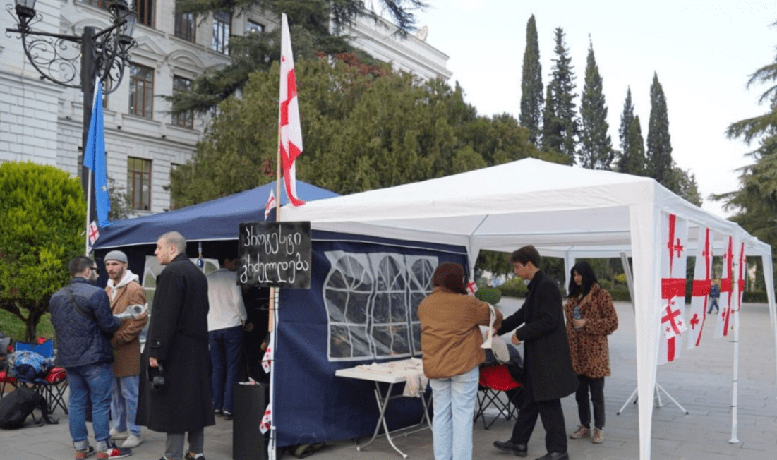 Студенты установили палатки во дворе Тбилисского университета