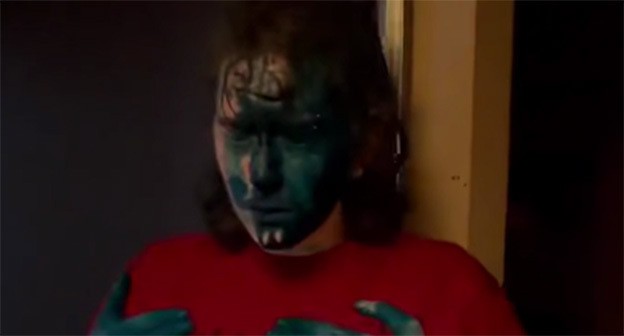 Сообщение проиллюстрировано коротким видеороликом, снятым в жилом помещении. На кадрах видна девушка, чье лицо и кисти рук покрыты зеленоватой краской. Съемку ведет другая девушка – в какой-то момент в кадр попадает ее рука, также покрытая зеленоватой краской. Рядом с ними в квартире находится еще одна женщина, она наблюдает за происходящим, не вмешиваясь и ничего не говоря.