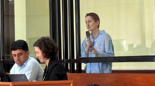 Затем слово было предоставлено самой Мзии Амаглобели. "Несправедливо, что меня судят второй раз за наклеивание плаката", - заявила судье Амаглобели. "Вы подтверждаете, что наклейка была наклеена?" - обратилась к Мзии Амаглобели представитель МВД Мариам Кереселидзе.