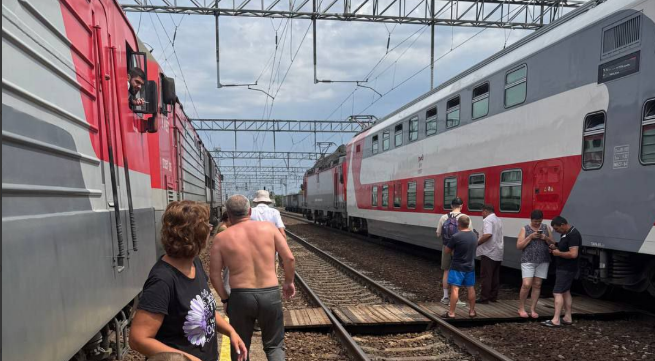 Телеграм-канал "Тютина" в 11.32 мск процитировал сообщение одного из подписчиков. "У меня поезд Новороссийск - Москва. Выезд из Ростова вчера в 21.47 был. В Москву должны были приехать сегодня в 19.00 вечера. Ночью, где-то в первом часу, встали в Замчалово, так и стоим с тех пор. Когда нас отправят, вообще неизвестно. Поскольку мы одни из первых влетели, нас и держат. Те, кто позже нас идет, их пропускают быстрее. РЖД написали в смске, что задержка в пути четыре часа, и извиняются. А потом прислали смс, что предыдущее смс было направлено ошибочно. Пассажиры все расстроены. У многих пересадка в Москве на другие поезда и рейсы на самолет. Вся логистика нарушена. Все пытаются дозвониться в авиакомпании или своим работодателям, чтобы те перенесли рейсы или сдали билеты. Электричество в розетках есть, но кондиционеры не работают. Еду в купе, сам вагон прохладный", - приводятся слова пассажира в сообщении.