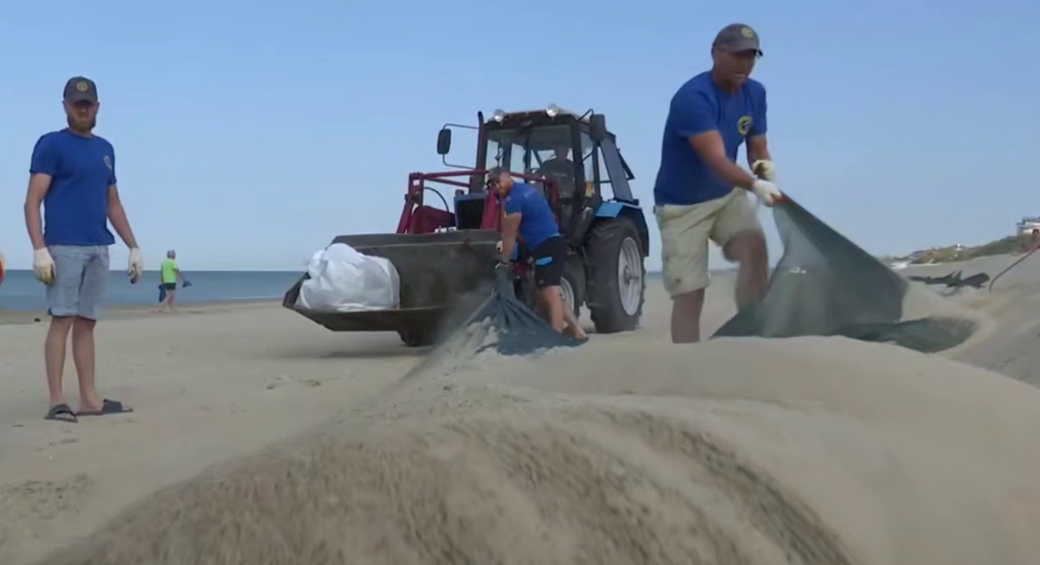 "Необходимость в защитном вале отпала, поскольку мы не ожидаем вторичного загрязнения береговой линии. На первом этапе мы убираем сети защитного вала, после чего перейдем ко второму этапу – разравниванию территории для последующего просеивания силами ООО "Курорты Анапы". В работах задействовано три единицы техники: фронтальный погрузчик и два экскаватора. За полгода сети значительно углубились в песок после зимних штормов, и теперь тяжелая техника помогает нам извлечь их из толщи пляжа, чтобы в дальнейшем они не мешали работе просеивающего оборудования; на сегодня уже выполнены работы на участке протяженностью полтора километра. Проведен первичный сбор сетей", - заявил он на приложенном к публикации видео.