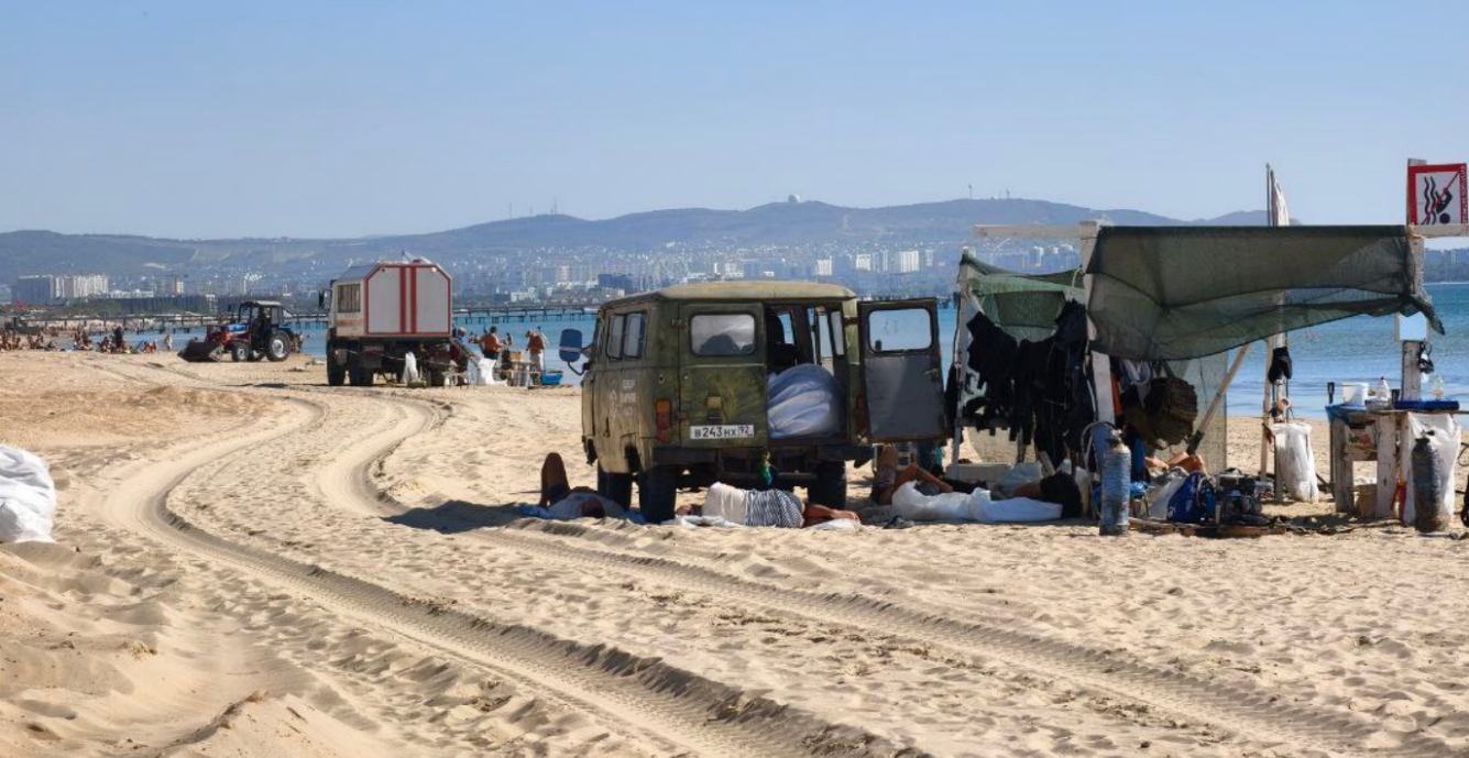Анапские блогеры ежедневно публикуют отчеты с пляжей. Так, отдыхающие расположились на пляже в Джемете неподалеку от техники, занимающейся уборкой пляжей, следует из фотографий, которые опубликовал сегодня автор Telegram-канала "Маковозовы".