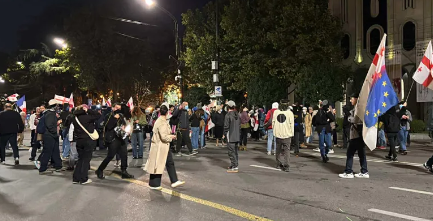 Протестующие в Тбилиси заблокировали проспект Руставели