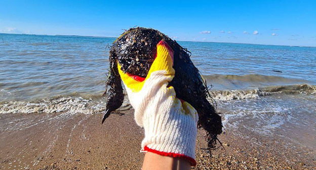 В Анапе точечные выбросы мазута обнаружены лишь на пляже "Высокий берег", заявил оперштаб. В Керченском проливе около шести километров берега загрязнено свежими выбросами, сообщили волонтеры.