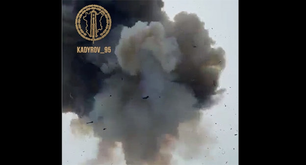 Публикация проиллюстрирована видеороликом, на кадрах которого показано, как утверждается, уничтожение беспилотника над Грозненским районом.