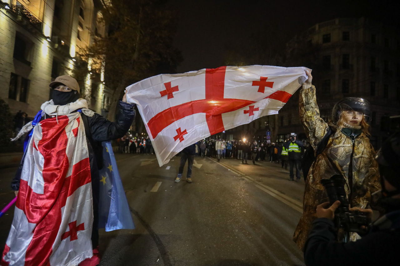 В Грузии уже второй год проходят ежедневные акции протеста с требованием новых парламентских выборов и освобождения всех задержанных за участие в демонстрациях. Демонстранты перекрывали движение по проспекту Руставели в течение 343 дней подряд. С 6 ноября силовики не позволяли активистам перекрывать движение, выставляя оцепление вдоль проезжей части, за попытки выйти на дорогу протестующих задерживали.