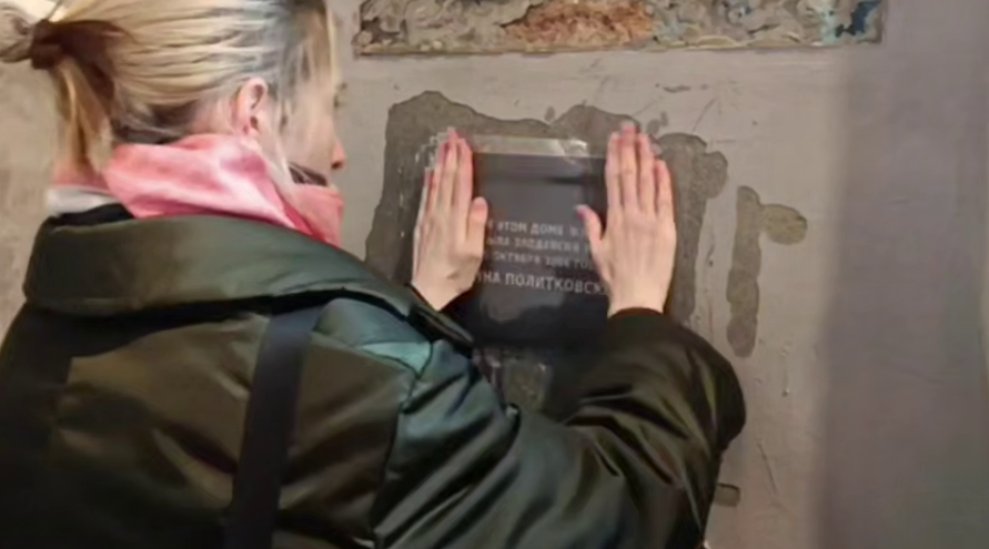 Активисты восстановили табличку на доме Политковской более 20 раз