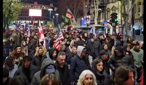 Протестующие шли по улицам Тбилиси, скандируя лозунги, следует из видео, опубликованного Publika.