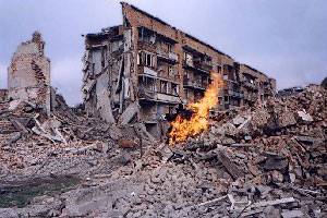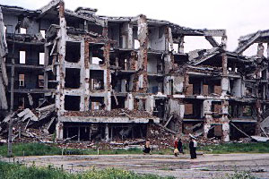 Что же касается событий чеченского конфликта, то, по мнению всех экспертов, весьма значительную долю в потерях составляют жертвы бомбежек и неизбирательных обстрелов, прежде всего в Грозном. При многоэтажной застройке, какая существовала в Грозном, гибель целых семей во время бомбардировок была неизбежна (см. фото); ведь не станет же Максудов говорить, что вероятность гибели супругов была мала при взрыве на улице Гурьянова в Москве.