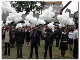 После этого школьный двор погрузился в плач. Дети, запустившие шары, также не могли сдержать слез. После того, как прошла минута молчания, люди еще долгое время стояли в тишине, передал корреспондент РИА "Новости".