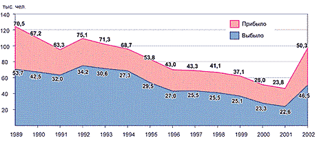 Рис. 2. Динамика миграционного прироста в Ставропольском крае 1989–2002 гг.