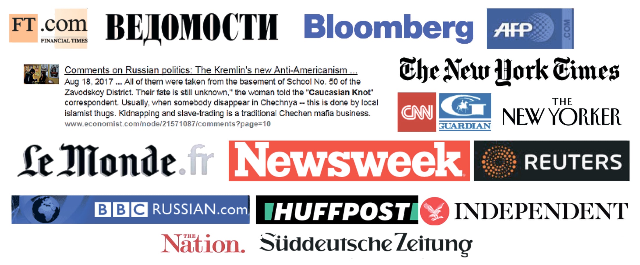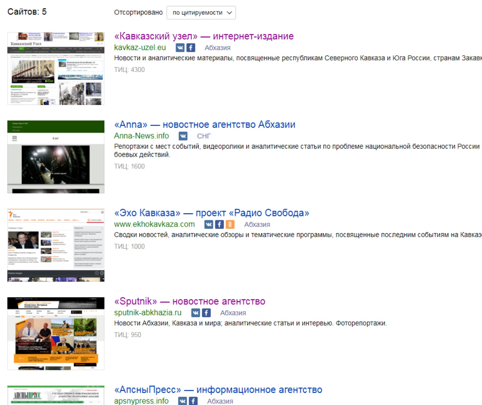 1-2 места по цитируемости на Южном Кавказе (более 75 тысяч цитат в русскоязычных СМИ).