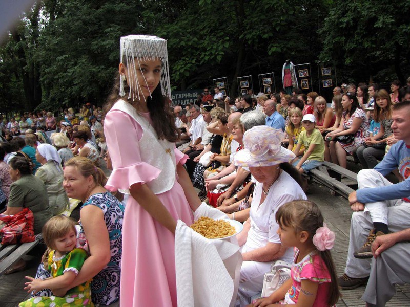 Публике были предложены традиционные для татар состязания в переносе полных ведер воды на коромысле. Девушки в национальных нарядах предлагали всем попробовать национальное татарское блюдо чак-чак.