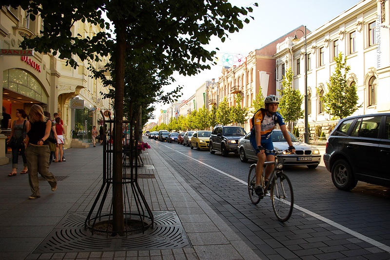 но в Европе с велосипедными дорожками все строго, никто, ни пешеходы, ни автомобили никогда туда не вылезают. выглядит это чаще всего так, дорога поделена на три полосы - легковые авто, велики и автобусы.