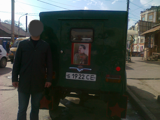 повстречал во Владике этот необычный автоэкземпляр, настоящий броневичок. я думаю, можно считать это 25-м по счету памятником Сталину в Северной Осетии, памятник на колесах. за рулем был пожилой человек в большой кепке. я с улыбкой спросил его, можно ли сфотографировать, и он как-то не по-доброму посмотрел на меня, не сказав ни слова. я принял это за согласие.