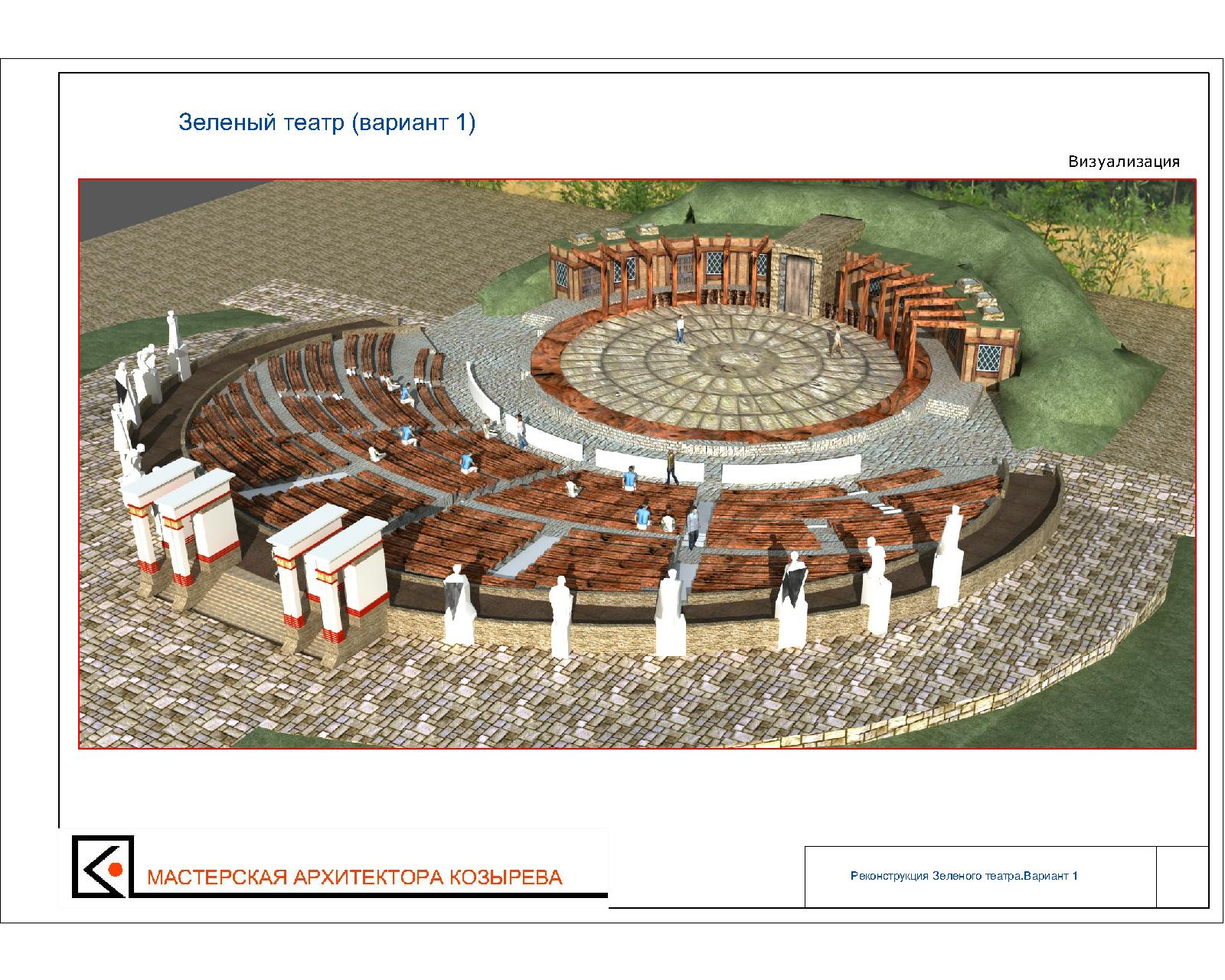 на ваше обсуждение еще один проект мастерской Олега Козырева "Страна нартов". предполагается в районе водной станции, с восстановлением давно погибшего "летнего театра". как и с минигородом на острове в Тереке, оставляю без комментариев. от меня только фото "летнего театра", в самом конце. проект также пока "висит в воздухе".