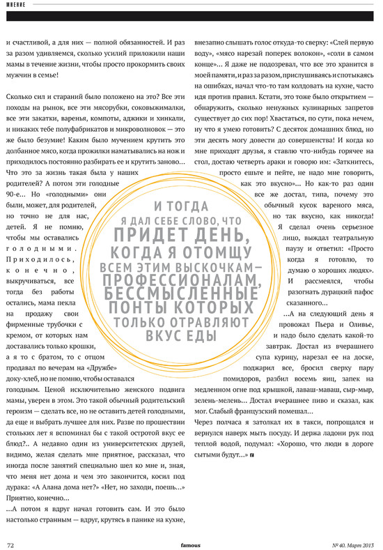 моя "кулинарная" колонка для журнала Famous