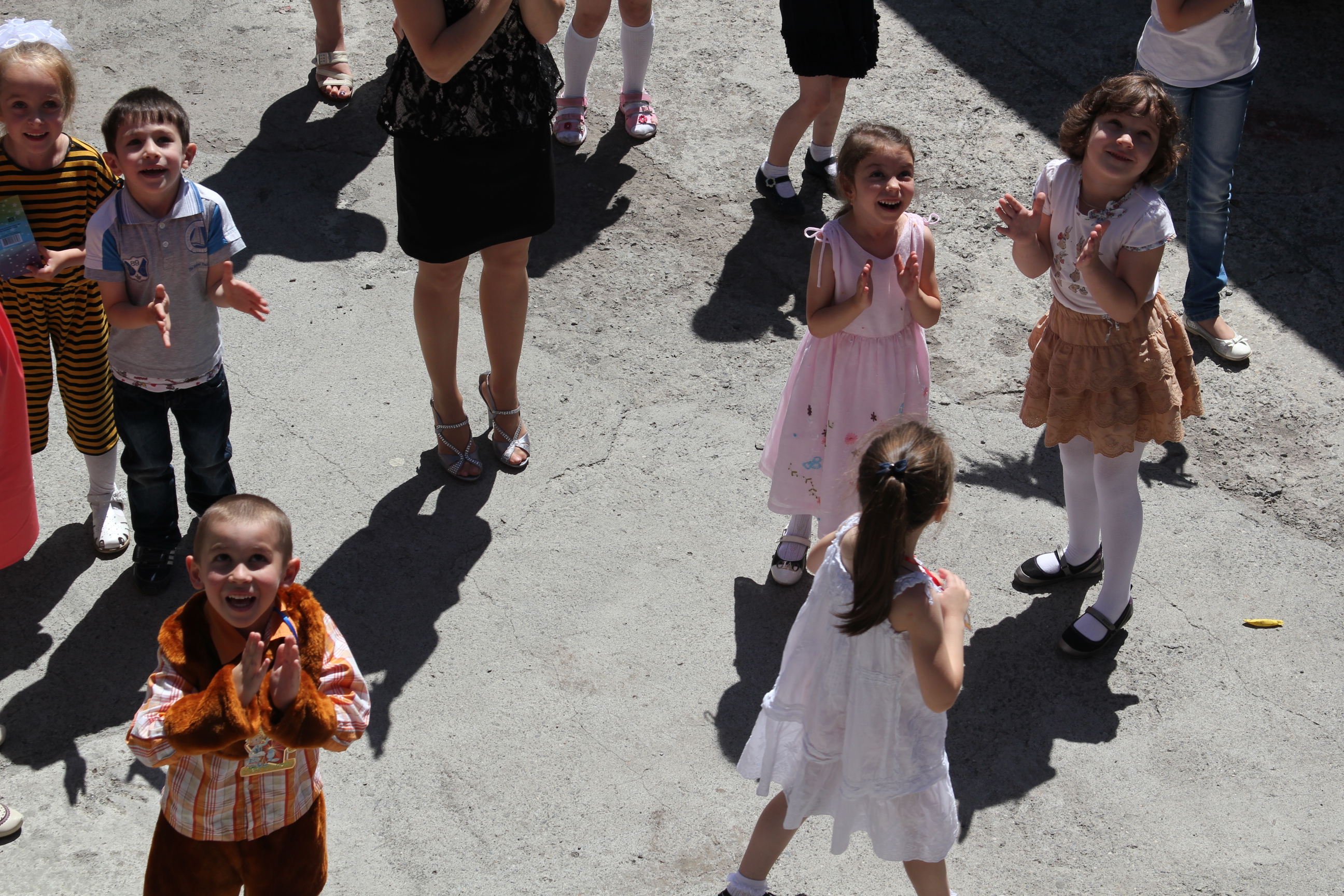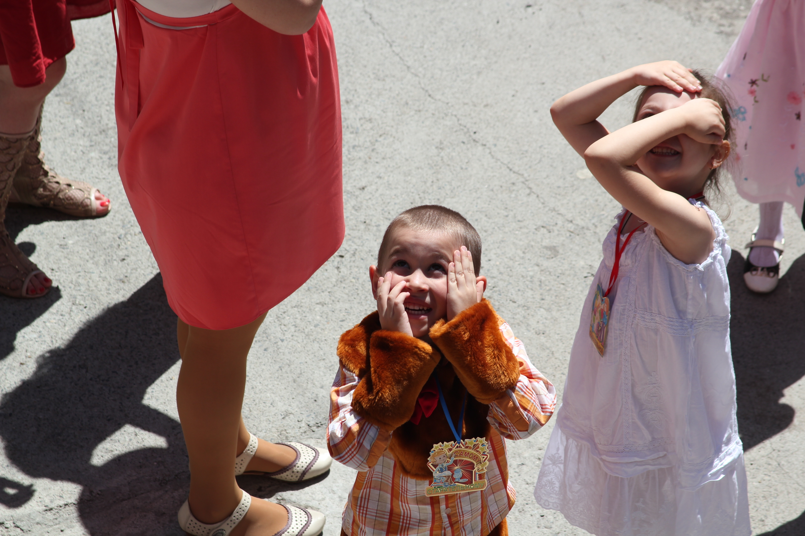 Гайтошка был медведем, которого покусали пчелы. без всяких метафор с сегодняшней политической жизнью в России. просидел тупо улыбаясь час, пока они там разыгрывали свои сценки, а потом дети во дворе школы запускали в небо воздушные шарики. и может это не самые лучшие фото, я не фотограф, но на их лица, которые они закрывают от солнца, я сейчас могу смотреть бесконечно. лица детей, которые смотрят на улетающие в небо шарики...