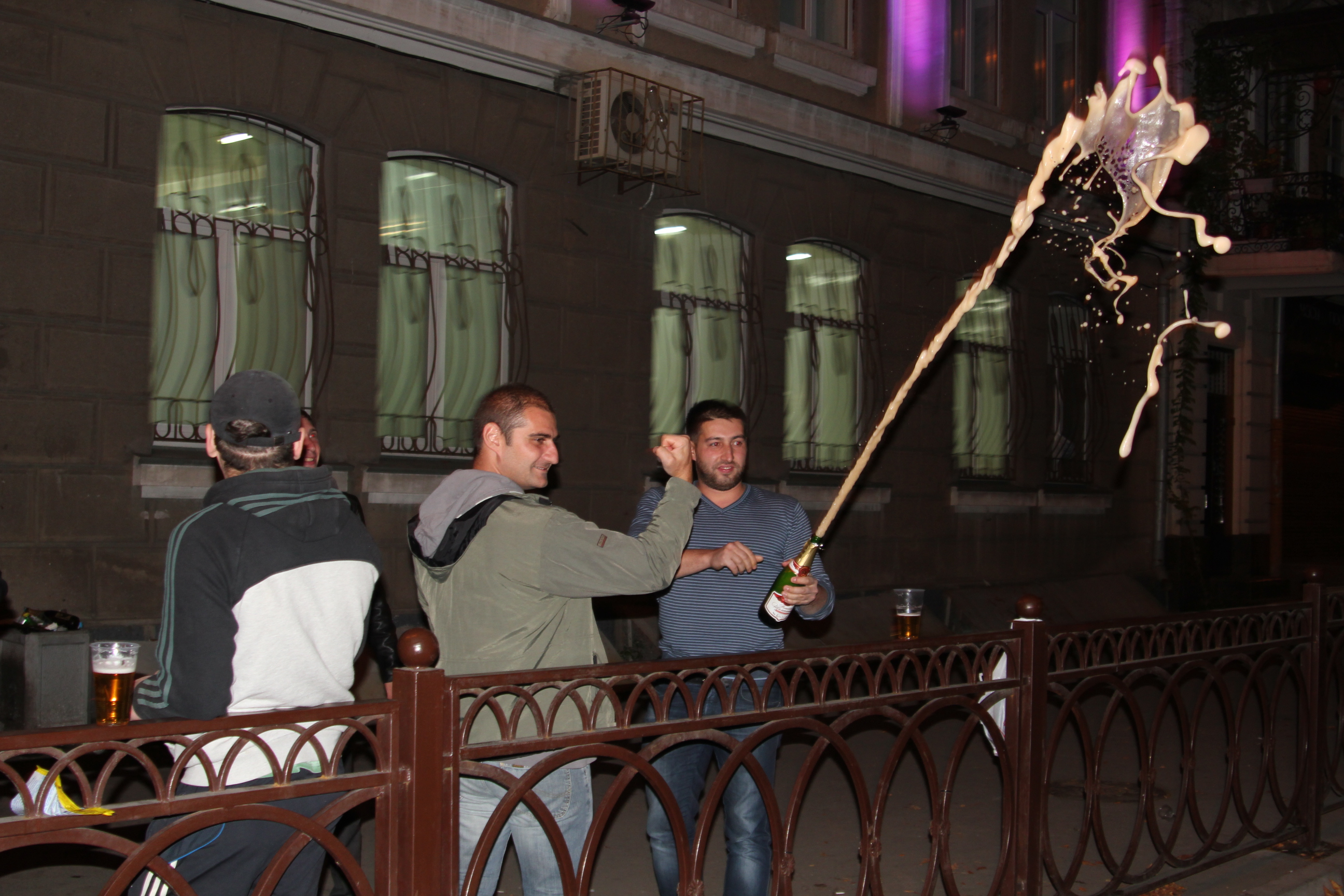 традиционное празднование рождаения ребенка в центре города у роддома на Кирова. три фото.