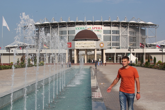 стадион и мой недовольный приятель, который так и не смог найти в Грозном бутылку пива
