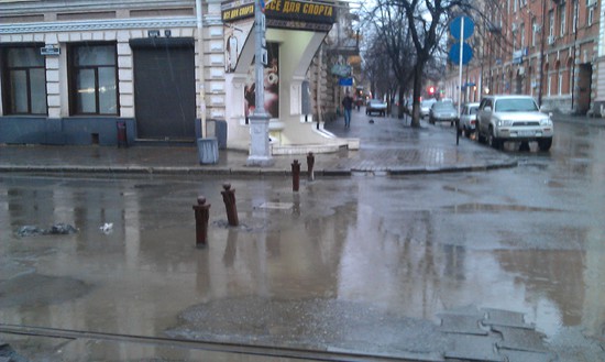 сейчас, кстати, редкие дни, когда Терек обретает приятный зеленоватый цвет, в морозную погоду он даже прозрачный бывает. это редко, потому что подавляющее время он грязный и некрасивый. но и сейчас его портят эти городские сливы. какое-то коричневое Г вливается в Терек в районе парка.