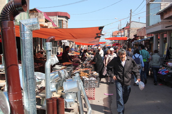 кстати, на рынке очень много азербайджанцев из Мареули, азербайджанского анклава в Грузии, приезжающих сюда торговать с армянами.